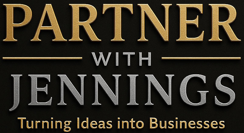 Partner with Jennings collaborates with founders, creators, and growing businesses on business planning, product development, partnership structuring, profit/revenue share programs, and training systems.